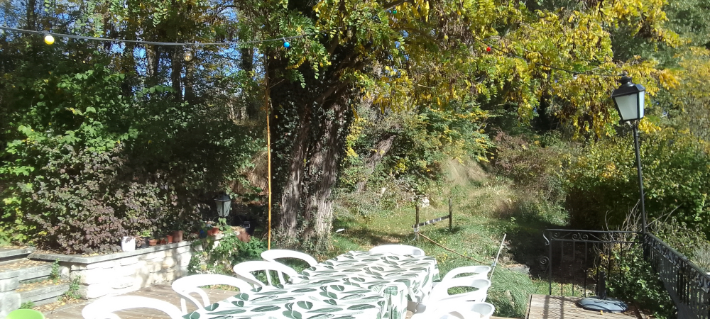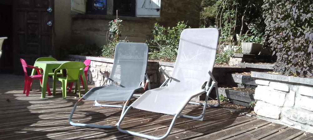 Située au pied de la tour, la terrasse, exposée sud-est, est à l'usage exclusif des locataires. On peut y prendre le petit déjeuner en écoutant les oiseaux le matin, y lézarder sur les chaises longues dans la journée, y apprécier l'apéritif sous une guirlande colorée le soir, ou y admirer les célèbres nuits étoilées. Chacun l'appréciera à sa façon...