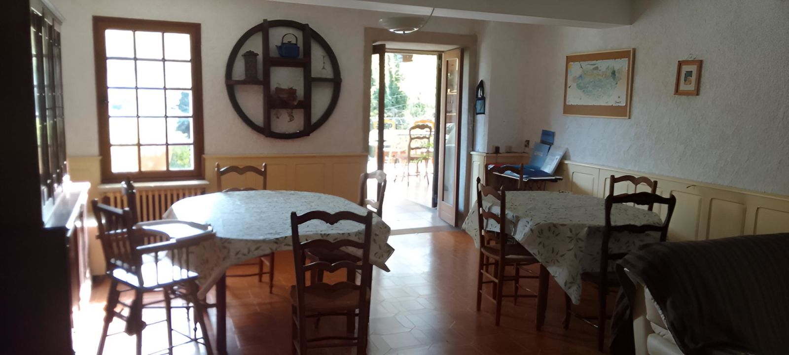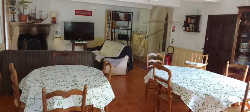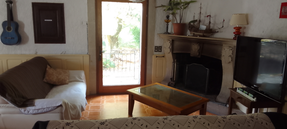 Le salon/salle-à-manger est un bel espace qui dessert la cuisine, la terrasse et la véranda. Ses murs de pierre conservent une certaine fraîcheur appréciable en été, tandis que sa superbe cheminée illumine les soirées d'hiver. Chaîne stéréo, guitare, TV grand écran, canapés y sont mis à disposition et invitent à des loisirs variés.