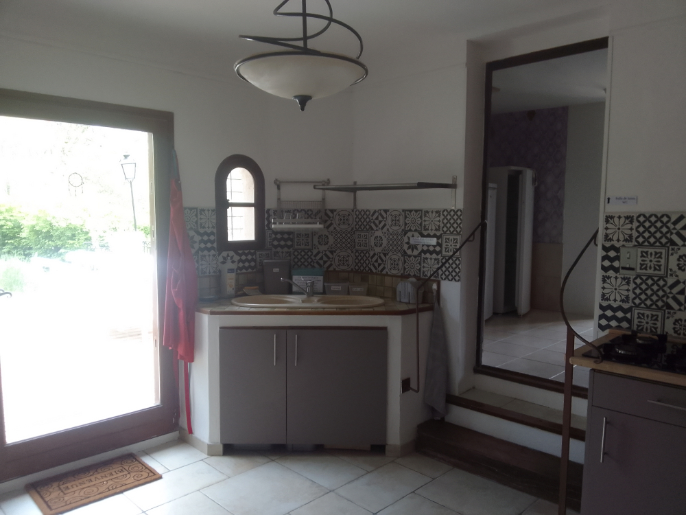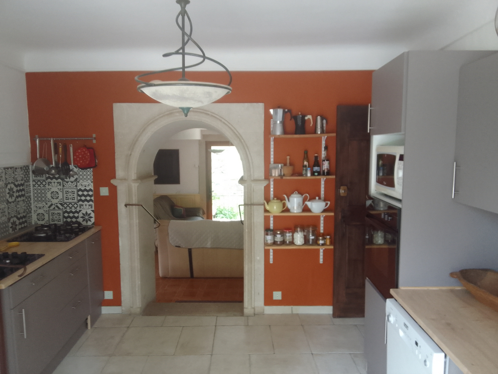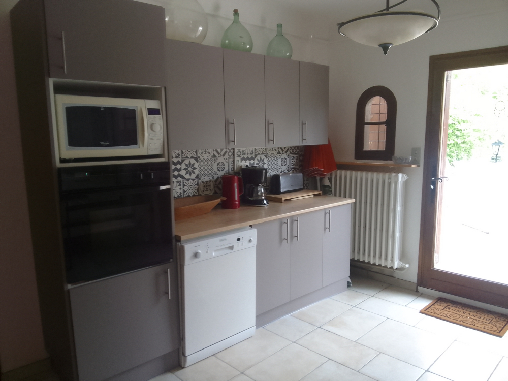 Enfin, la cuisine donne d'un côté sur la salle à manger, de l'autre sur la terrasse, facilitant ainsi les repas en intérieur ou en extérieur selon la saison.